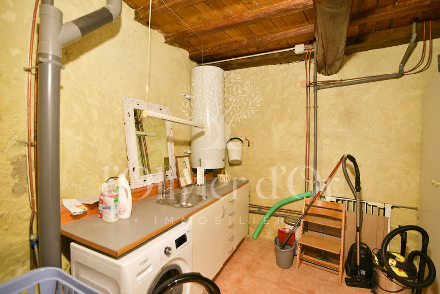 La maison séduit également par ses beaux éléments anciens : escaliers, voûtes, murs en pierre apparente… Un cachet préservé qui lui confère une atmosphère chaleureuse et authentique.