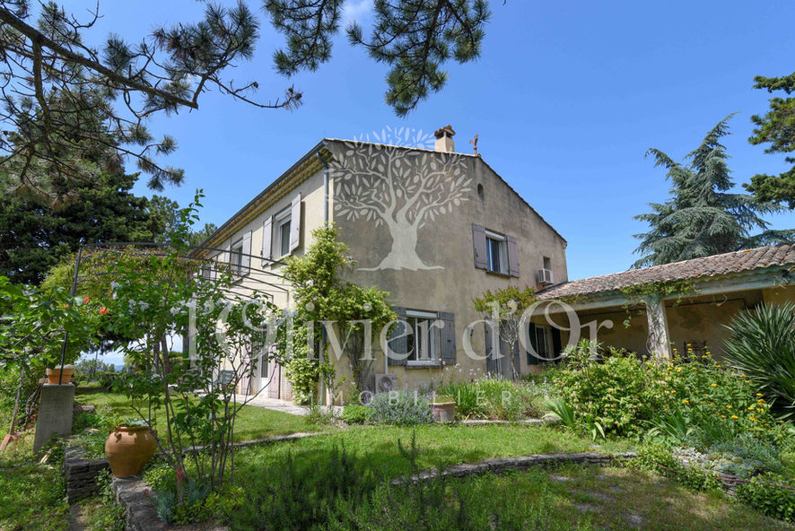 À Tulette, en Drôme Provençale, L'Olivier d'Or Immobilier vous propose à la vente cette très belle propriété de village du 19e siècle, nichée sur un terrain de 4100 m² planté d'oliviers.
